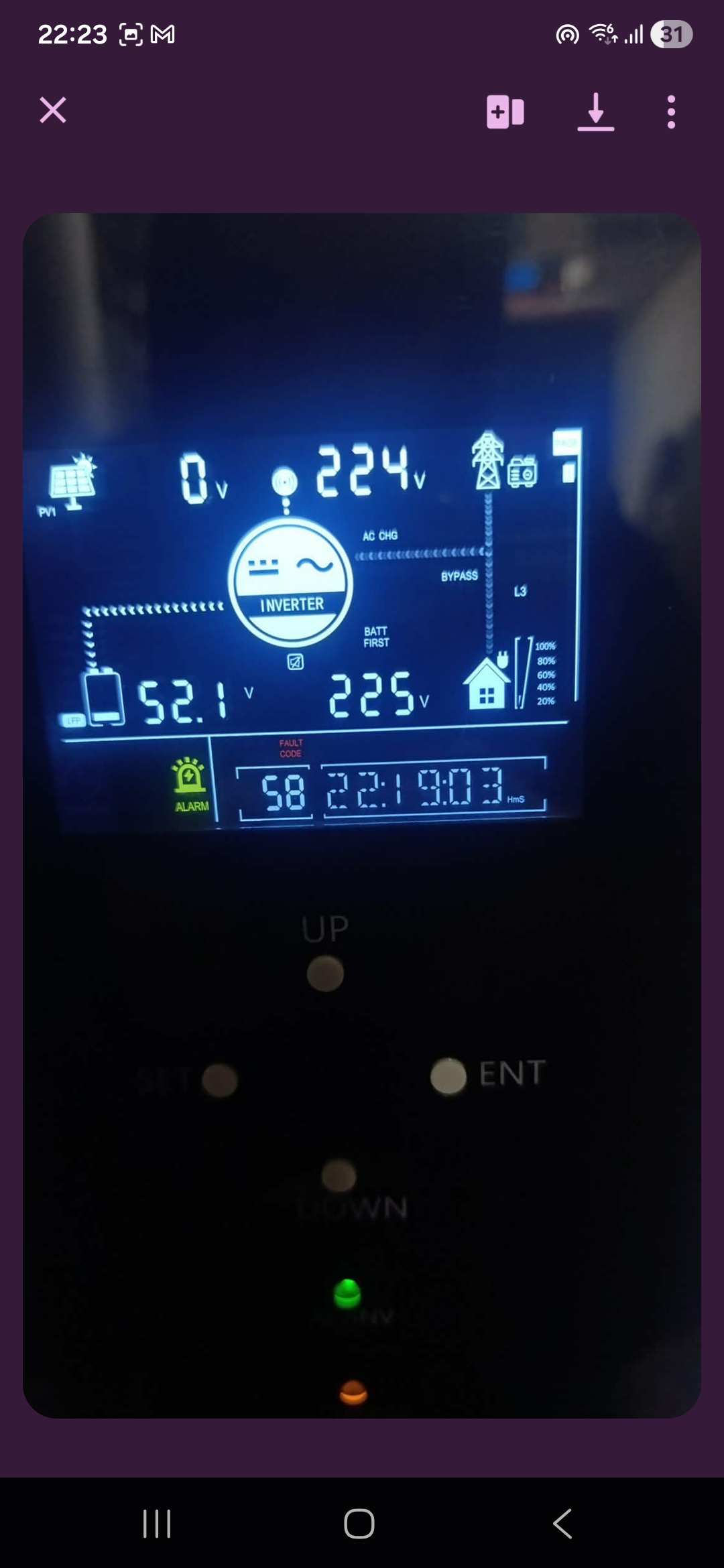 Dodatkowo w Parametry 40 i 41 ustawiliśmy na godziny 22:00 – 06:00 rano, a ID 46 na ENA, żeby ten harmonogram włączyć i na 59 mam ustawione 30% q mimo to teraz po 22 mam 40% magazynu i z sieci włączyło sie doładowywanie